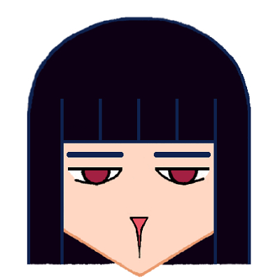 髪型がツタンカーメンのようなこのキャラクター、女性に見えなくもないかもしれませんが、同人作家時代の設定では男性でした。かわいらしさを意識した二人とは雰囲気が違います。不気味な印象を受ける人もいるかもしれません。同人時代の小話では、かわいい系のキャラばっかり出てくると(少なくとも僕の中では)面白くなかったんです。ちょっと不気味系のキャラクターが欲しかったんです。それで、こんな絵になりました。